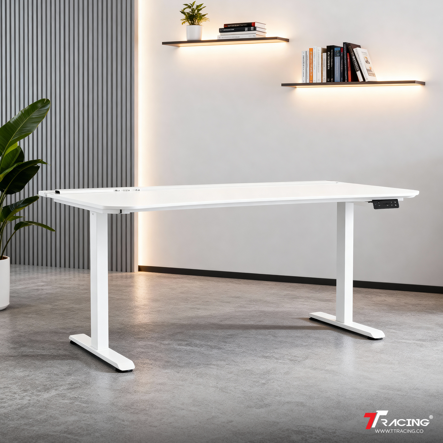TIVON standing desk with modular smart accessories for a modern sit-stand workspace